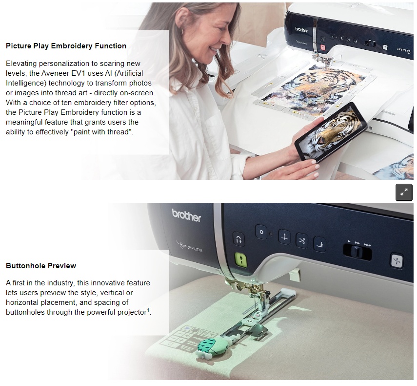 Step into next-level sewing, embroidery, and quilting with the Brother Aveneer EV1, a true pinnacle of perfection! Designed to revolutionize your creative workflow, this flagship machine delivers cutting-edge AI technology, luxurious features, and high-speed precision, ensuring unmatched artistry and efficiency.