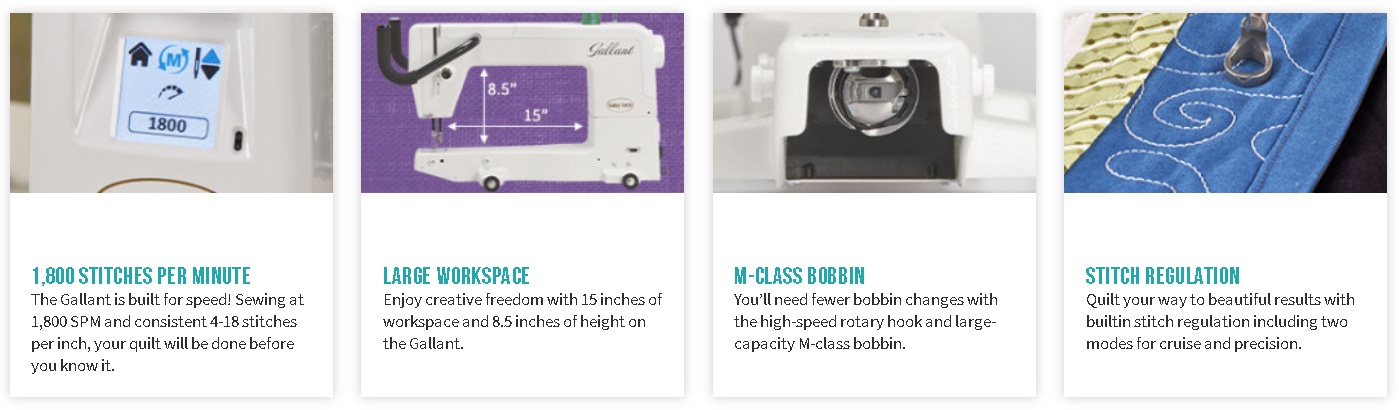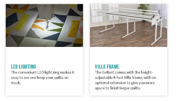 The Baby Lock Gallant longarm quilting machine features include: