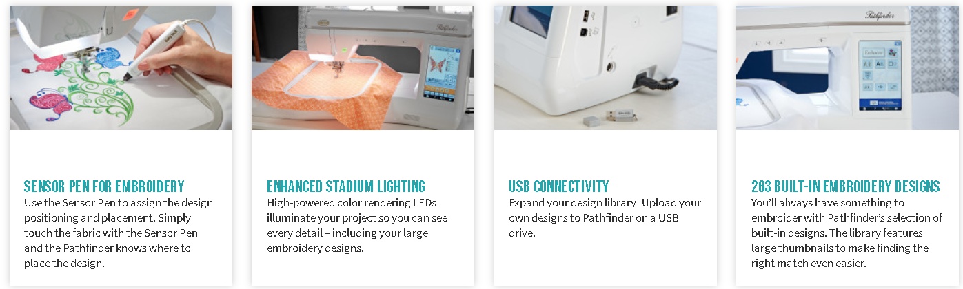 With intelligent technology, effortless usability, and pro-level features, the Baby Lock Pathfinder makes embroidery fun, easy, and frustration-free