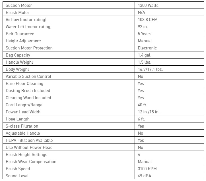 The sturdy ESSENTIAL G is a powerful, technically advanced, upright vacuum cleaner that will provide years of reliable use! It has four-level, manual brush height adjustment and comes in two power-head widths: the 12-inch G4 and the 15-inch G5. They clean carpets and hard floors and have excellent pet-hair removal. The G series also features an electronic controller that acts as a brain, alerting the user to a worn brush, or when brush height is set too high for optimal cleaning. It even shuts off automatically when a full bag, a clog, or a brush-roller obstruction occurs, which protects the motor, belts, and carpet from damage. They also have an instant-use cleaning wand and suction hose, an exterior housing with a scratch and scuff-resistant matte finish, tool-free brush roller removal, a 40-foot power cord, three on-board attachments, and protective rubber-coated wheels.