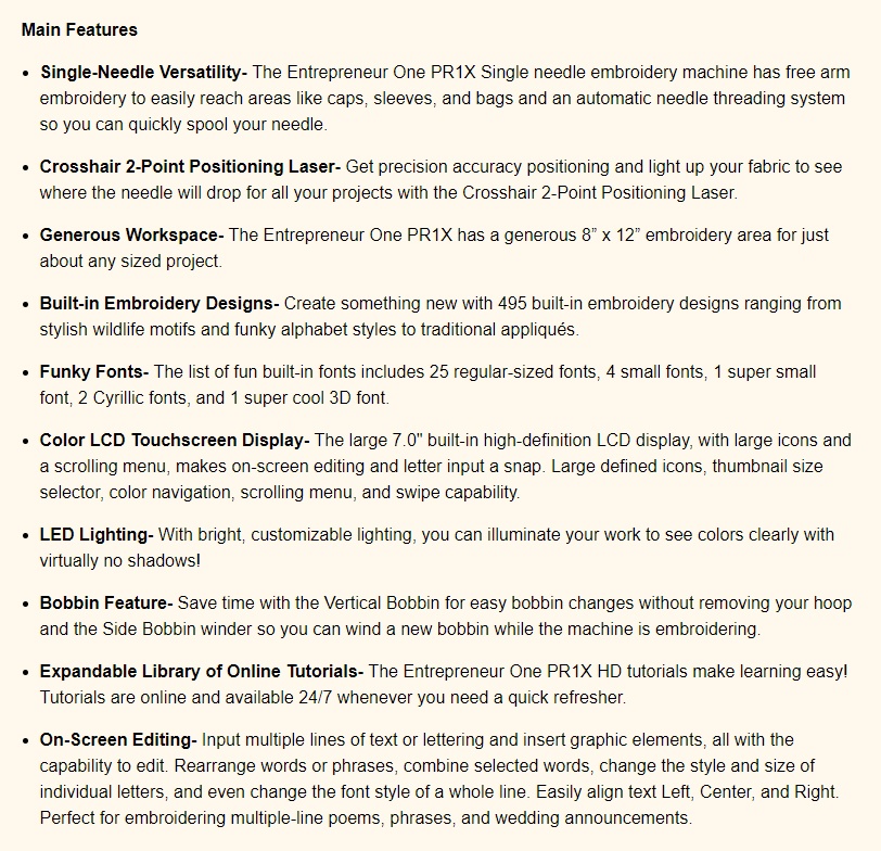 Step into precision embroidery with the Brother Entrepreneur One PR1X, the ultimate single-needle marvel designed to take you from hobbyist to professional! Whether you're personalizing garments, crafting intricate designs, or tackling challenging projects, this machine ensures accuracy, efficiency, and creativity at every stitch.