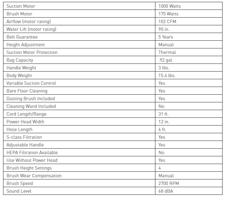 The stylish, ultra-quiet FELIX offers all the flexibility of a canister vacuum cleaner in an upright configuration! It has highly maneuverable 180° steering ability, a convenient instant-use cleaning hose, excellent filtration, two on-board attachments, and a hard-floor parquet brush. Its detachable suction unit can also be used as a powerful hand-held vacuum with variable speed control. It features the 12-inch-wide ET-1 power head that has four-level manual height adjustment, cleans both carpets and hard floors, easily removes pet hair, and the extension side of its L-shaped contour makes cleaning under counters easy. In addition, its spinning brush roller can be shut off to clean delicate rugs and hard floors with straight suction. It also has tool-free brush roller removal, a light that illuminates when brush height is set too high, the bristles are excessively worn, or when automatic shut off occurs due to brush roller obstructions.