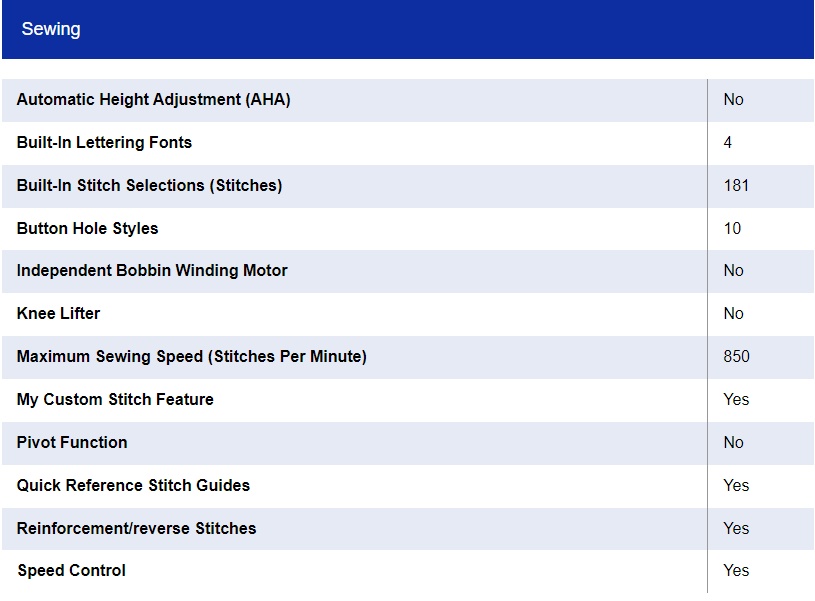 - 181 Built-In Sewing Stitches & 10 One-Step Buttonholes – A robust selection for decorative and functional stitching.
