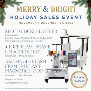 If you're ready to take your embroidery to the next level, the Brother PR680W is here to bring your boldest ideas to life! With six-needle speed, WLAN connectivity, and cross-hair precision, this powerhouse is built to tackle everything from intricate designs to large-scale projects—without skipping a stitch!