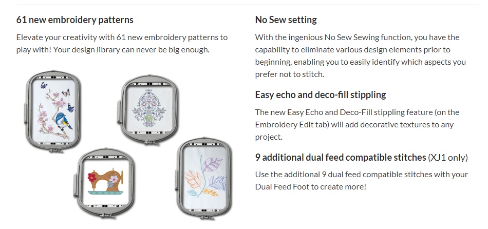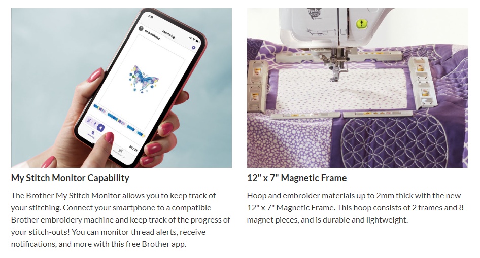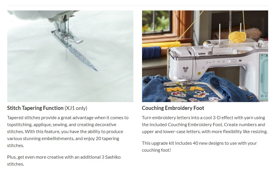 Upgrade your Stellaire Innov-is Edition to the next level with the XE1/XJ1 Upgrade Kit! Experience a range of exciting new features that will transform your sewing and embroidery projects. Unlock your creativity with the Couching Embroidery Foot for stunning decorative finishes, the innovative 7″ x 12″ Magnetic Frame for larger and more detailed designs, and the My Stitch Monitor capability to stay connected to your machine from your mobile device. This kit also brings you essential firmware updates, taking your Stellaire XJ1 to new heights. Elevate your stitching experience today with the Stellaire Upgrade Kit!
