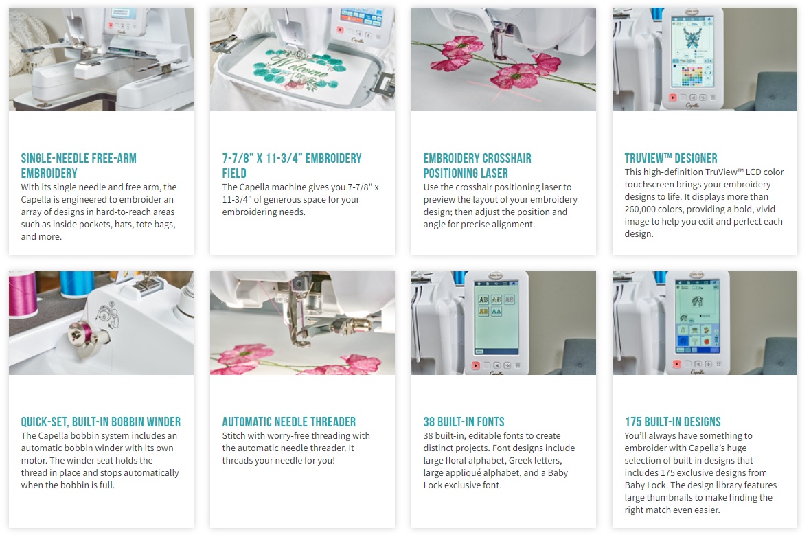 With its precision, convenience, and creative flexibility, the Baby Lock Capella makes embroidery effortless and exciting. Ready to bring your designs to life in even the trickiest spaces?